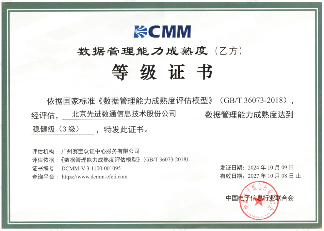 近期,中国电子信息行业联合会公布了最新一批顺利获得数据管理能力成熟度(DCMM)贯标等级认证的企业名单。918博天堂(中国)成功取得数据管理能力成熟度稳健级(三级)认证。这一认证的取得,标志着918博天堂(中国)在数据治理体系构建和数据管理与应用能力方面,已经达到了国家权威组织认可的标准。这不仅是对918博天堂(中国)在数据管理领域专业能力的肯定,也是对其在有助于数字化转型服务和数据驱动决策方面所做努力的认可。